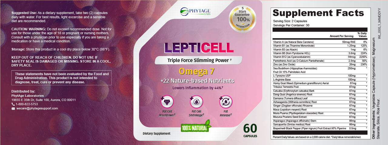 LeptiCell features a blend of natural vitamins, minerals, and plant extracts that support metabolism, hormone balance, energy, and appetite control for healthy weight management.